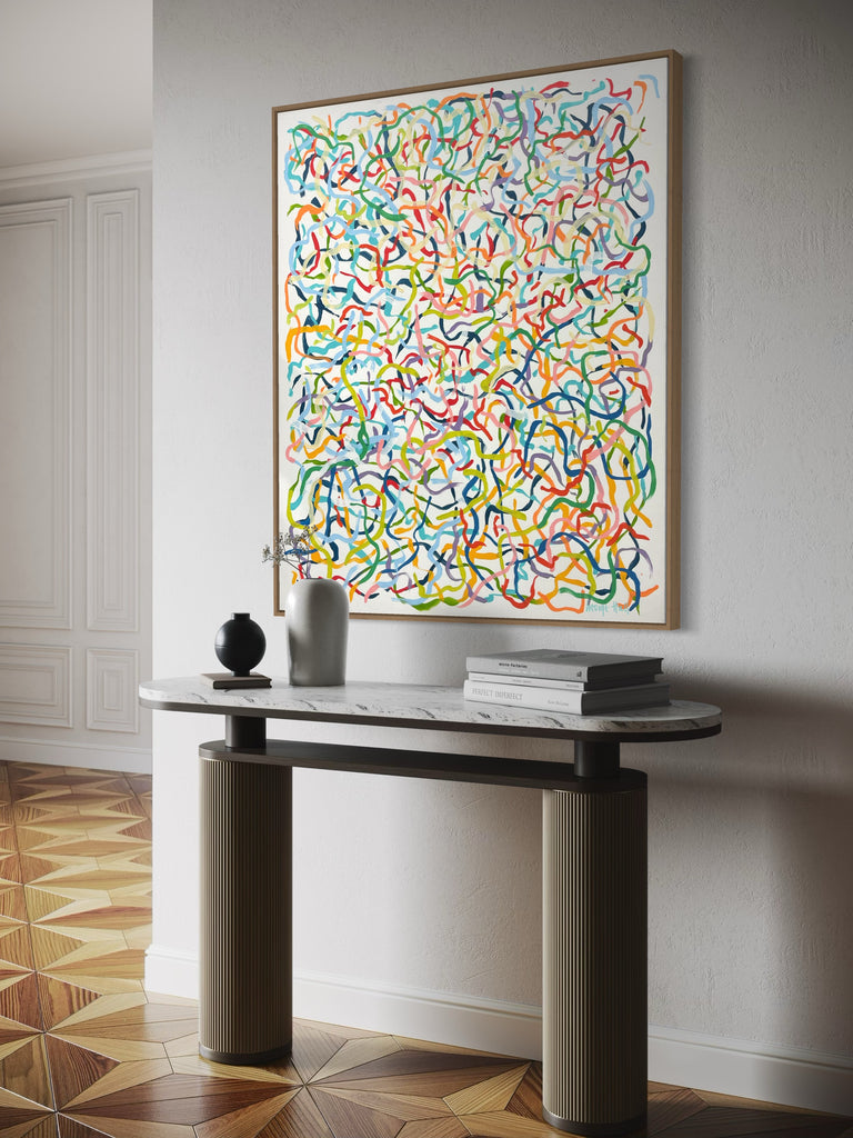 I aim to create pieces that don’t just fill a room but transform it—bringing calm, vibrancy, and an undeniable sense of positivity. These artworks are meant to blend seamlessly into their surroundings while standing as bold reminders of the beauty and joy around us. This is my invitation to experience art that radiates warmth, hope, and a touch of vitality.