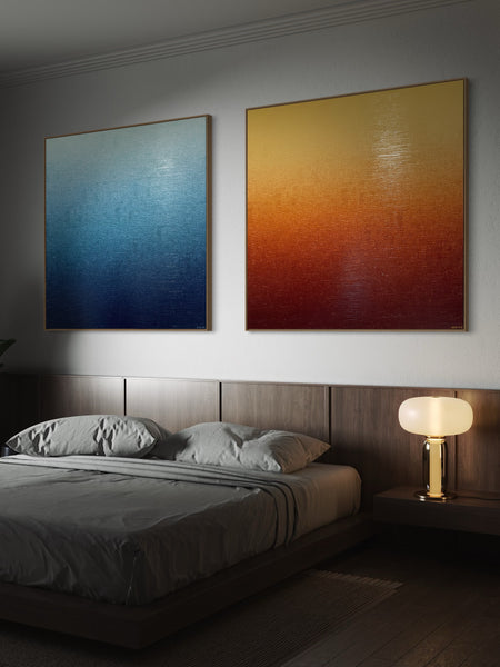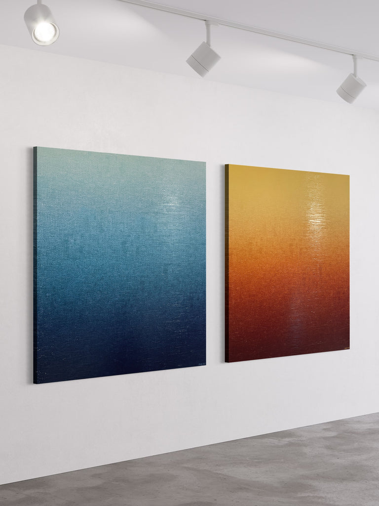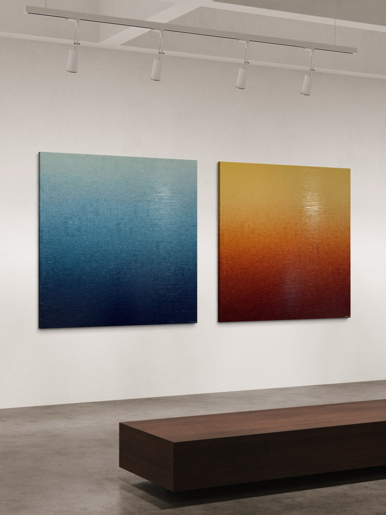 'Ambient Morocco' and 'Ambient Seas' - 127cm squ each / 50" squ each- mixed media on canvas