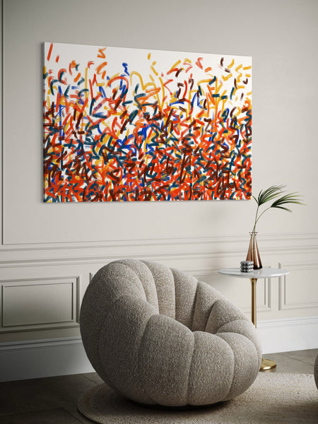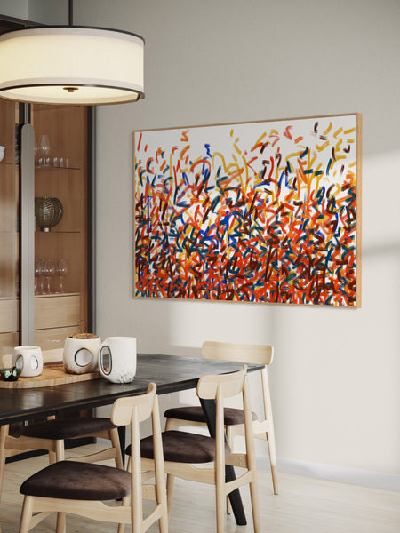 'Fortune' has been released as a limited edition 1 - 35 only. An artwork to express how nature is free to do whatever it wants, without expectations. This work is specific to the colours of Uluru in the Northern Territory and how they intertwine creating a dance of their own. It is not intended to be too literal and so allows you to see whatever you can find.