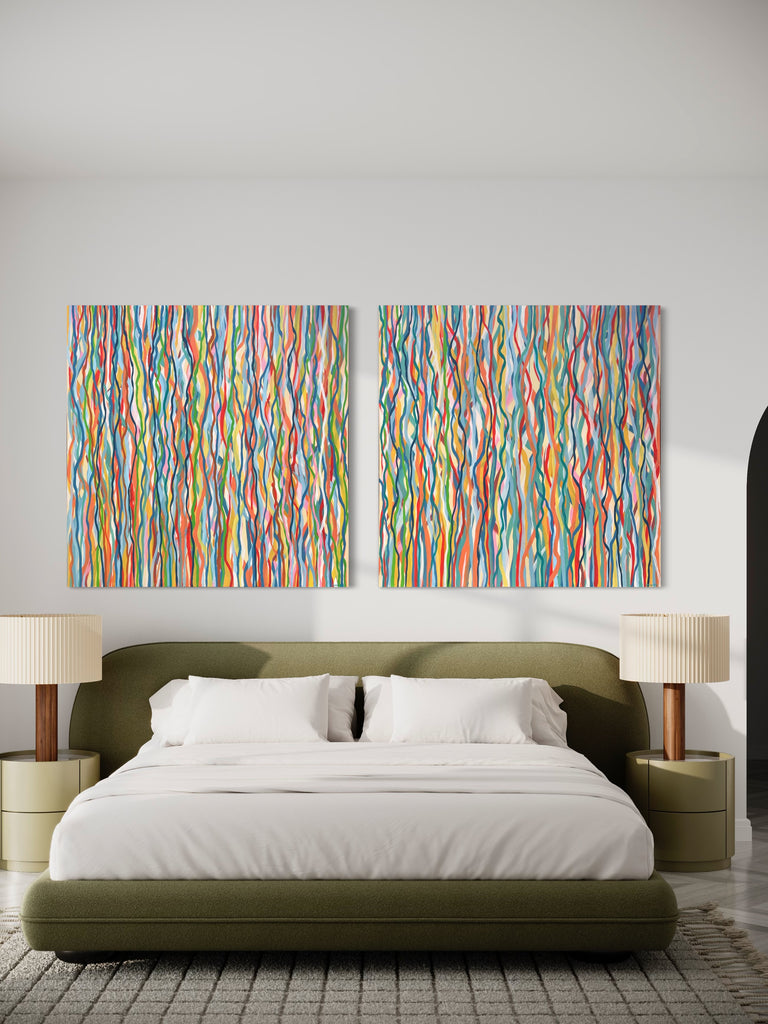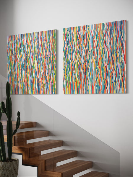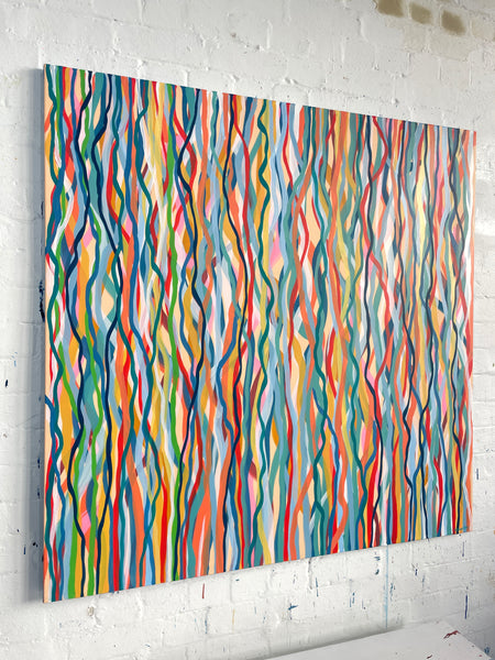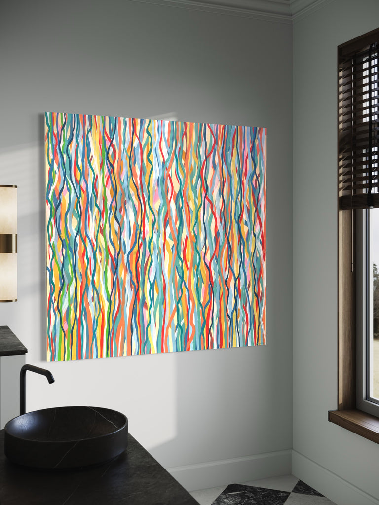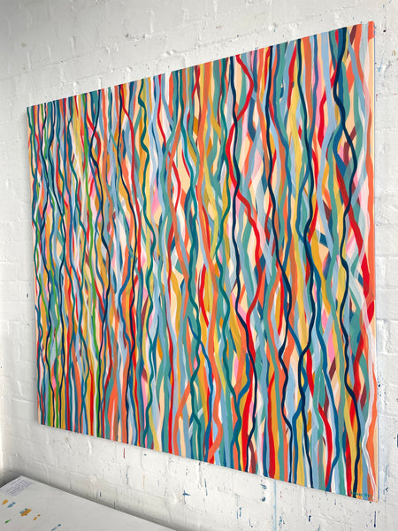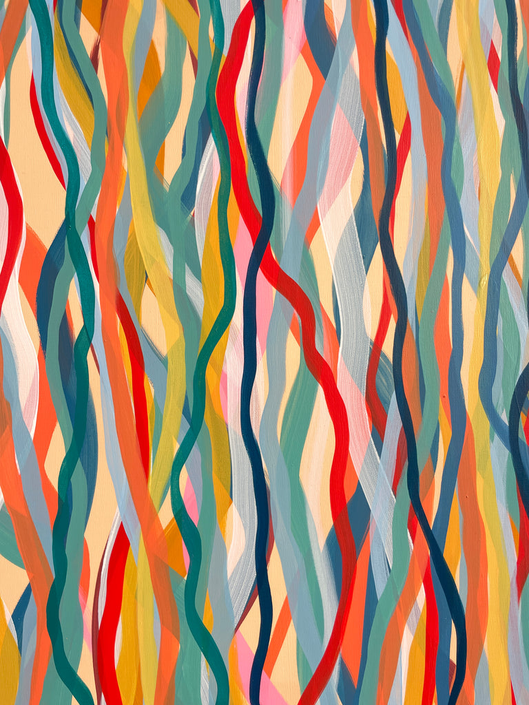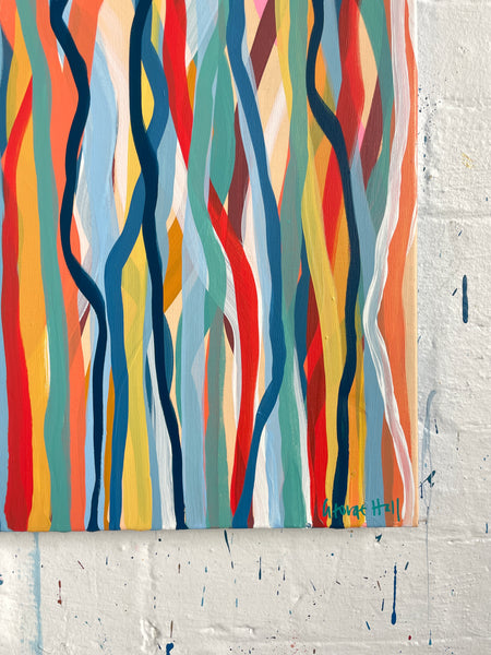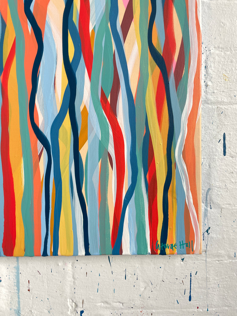 'Funk Walk B' is an abstract impression of the colours and movement of the 60s and 70's. I love the way the conflicting and complimentary colours create movement as if they are dancing to the music of that time.