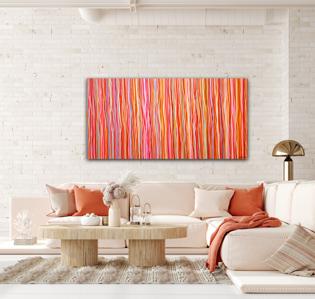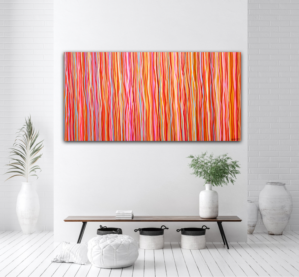 'Funky Groove' is an abstract impression of the colours and movement of the 60s and 70's. I love the way the conflicting and complimentary colours create movement as if they are dancing to the music of that time.