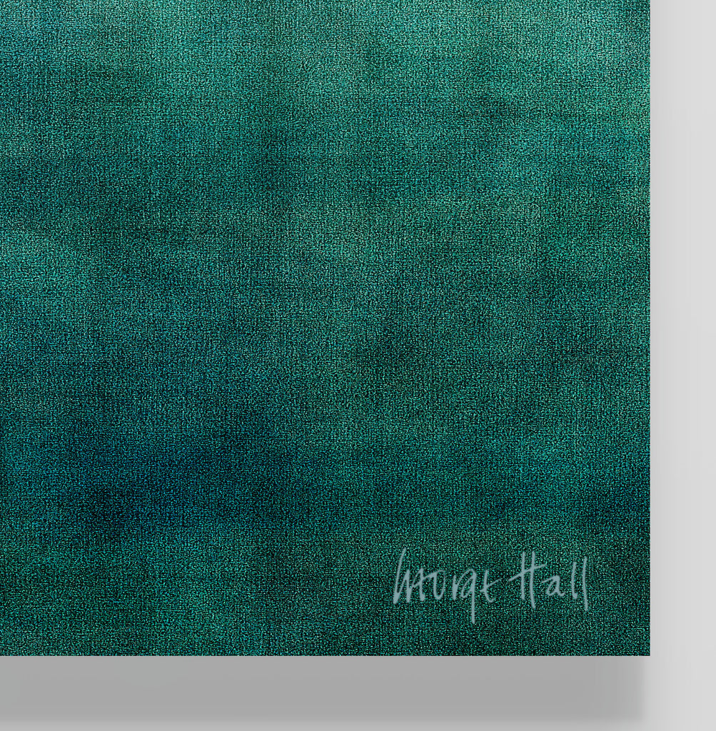 'Gradual View' is a mixed media artwork created with spray paint, acrylic relief printing with textured fabric, polymer stained glazes and finished with 3 coats of UV protective satin varnish, it will not fade in direct sunlight.