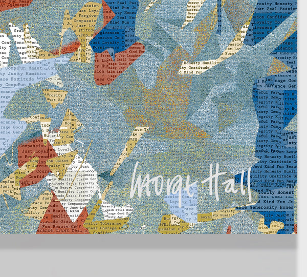 This is a one of a kind artwork, there are no duplicates or prints, though there are others in this series, but they are all completely different from one another. It was created with acrylic graffiti paint pens, the background is a matt photographic print on canvas of the collage newsprint, made up of positive words and quotes, then stained with polymer glazes and finished with 3 coats of UV protective satin varnish, it will not fade in direct sunlight.