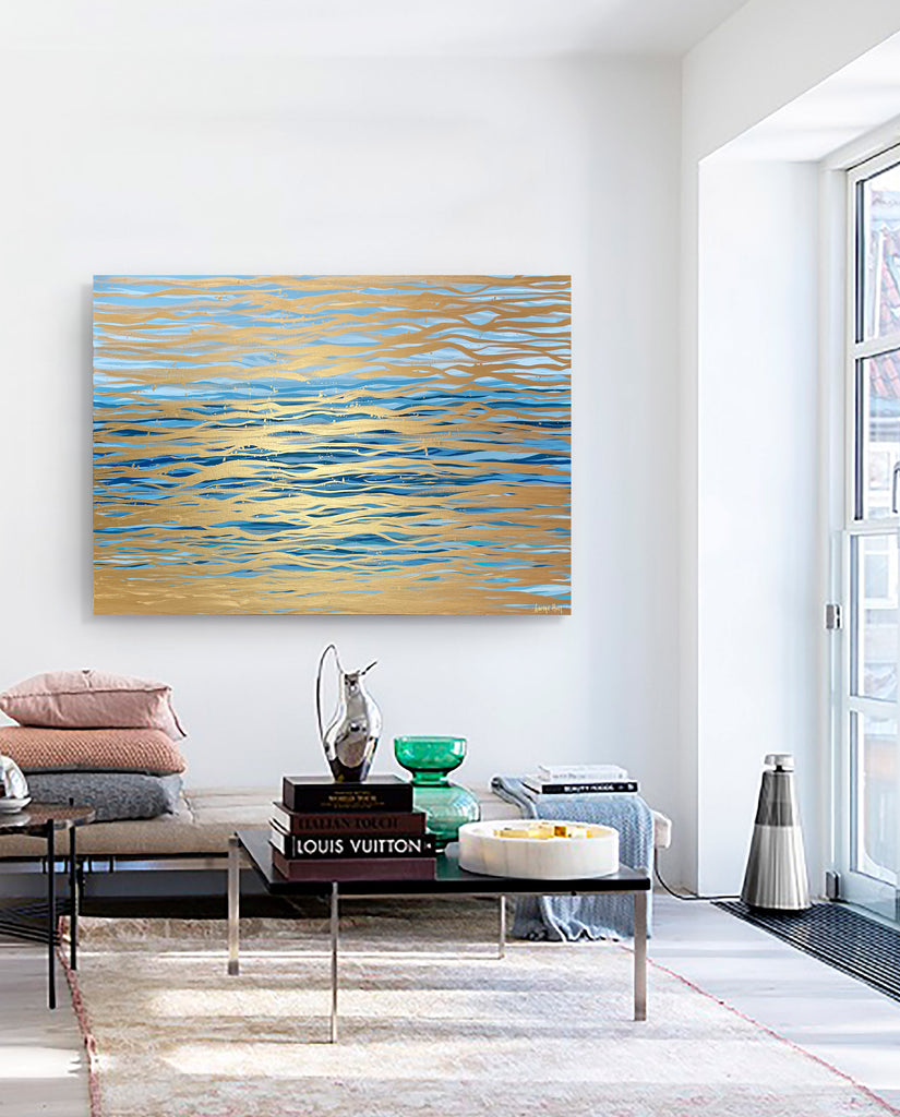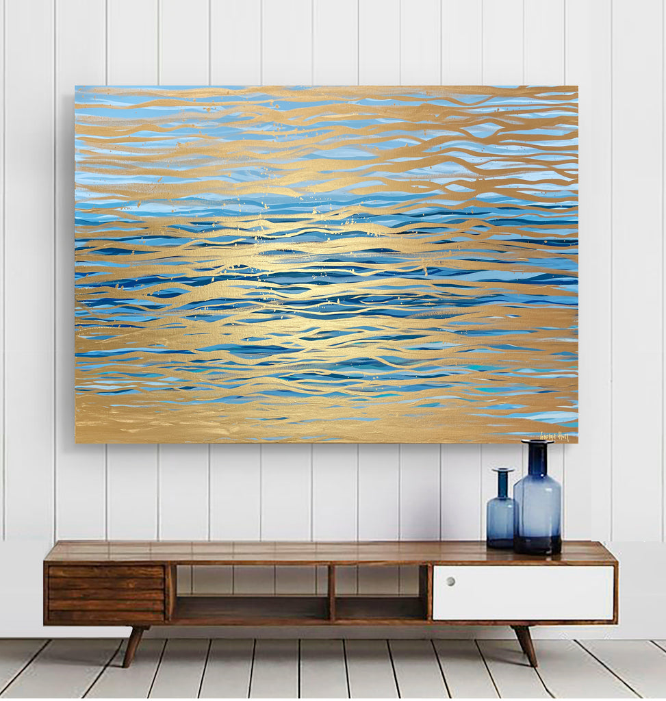 'Golden Current' by George Hall. Gold brings abundance, mental balance, and vitality. It helps learning and with the realization of self-potential. It will bring success, happiness, enthusiasm, and power. It will fill your life with comfort, kindness, and magic, making you more attuned to nature and the people around you. So being able to splash gold freely is a wonderful feeling of freedom.