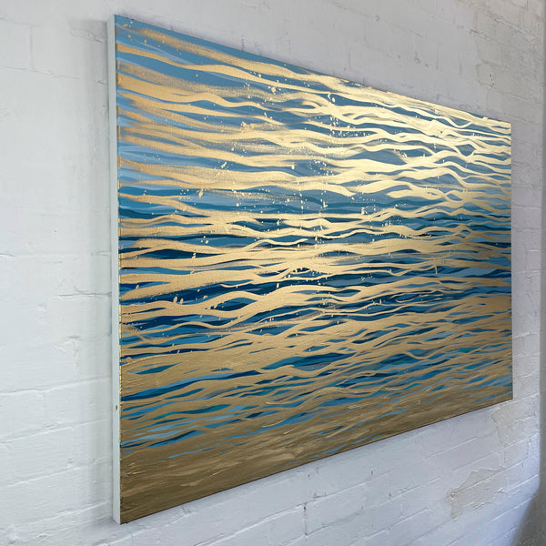 152 x 101cm metallic gold paint on canvas, ready to hang.