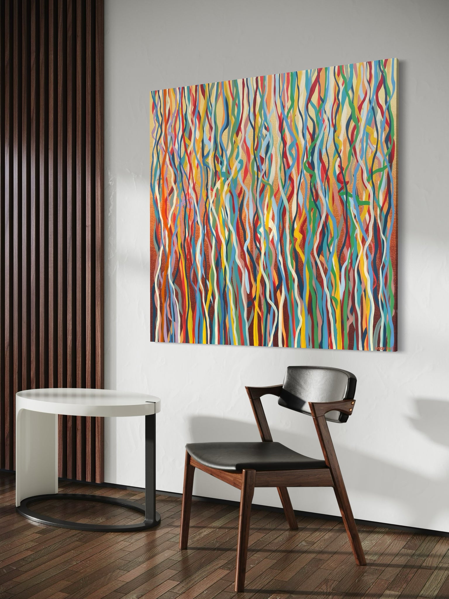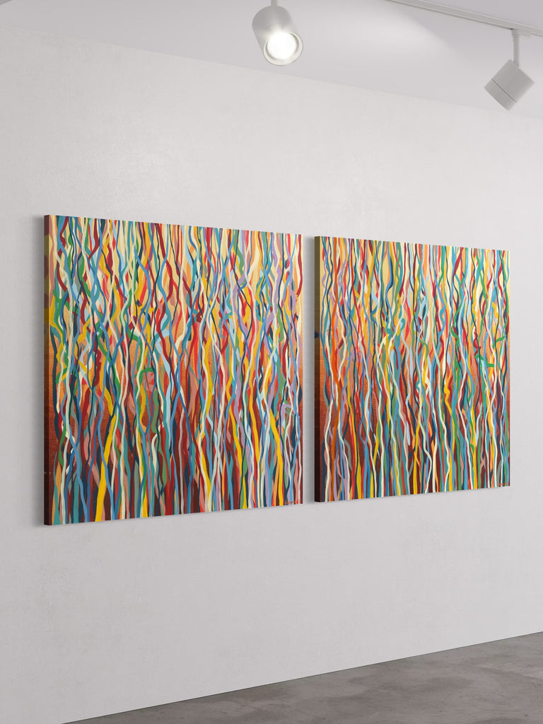 'Ambient Funk B' is an abstract impression of the colours and movement of the 60s and 70's. I love the way the conflicting and complimentary colours create movement as if they are dancing to the music of that time.