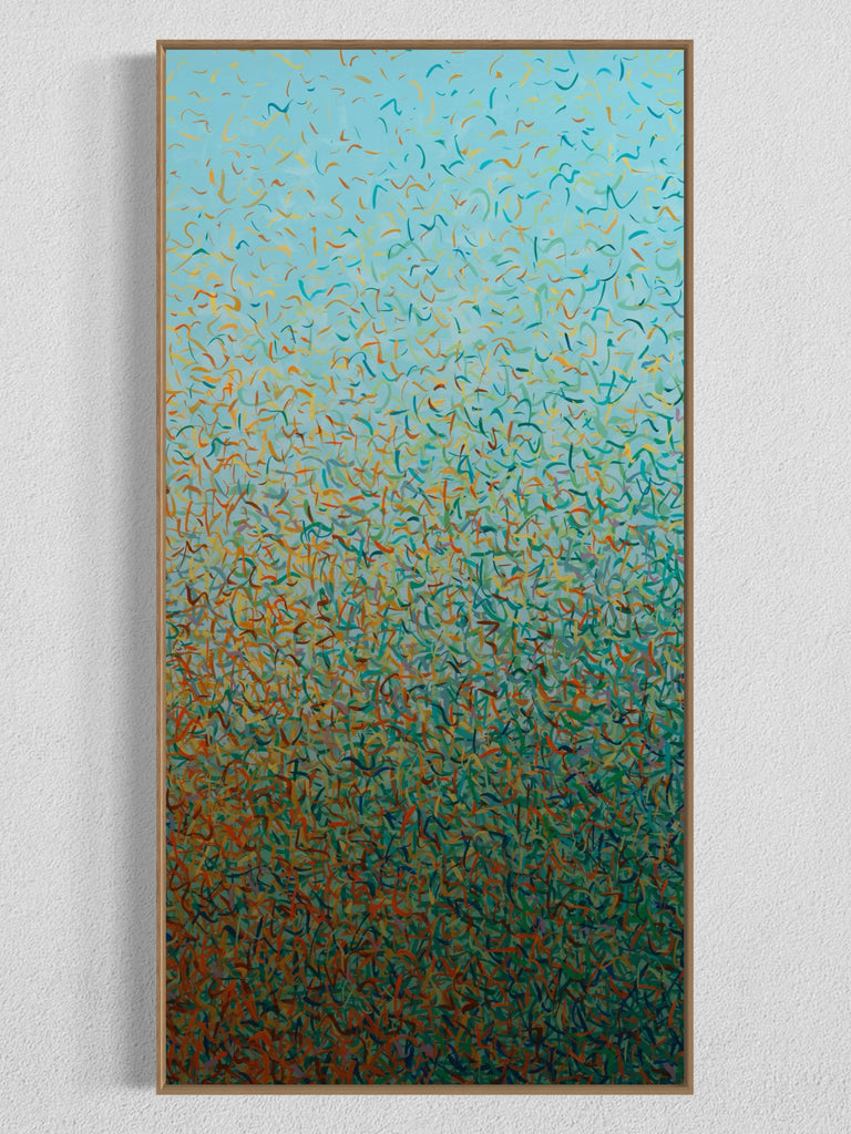 This artwork is a high quality scan of my original painting with colour crossing over one another to create effect. An artwork to express how nature is free to do whatever it wants, without expectations. This work is specific to the colours of the Australian landscape and how they intertwine creating a dance of their own. It is not intended to be too literal and so allows you to see whatever you can find.