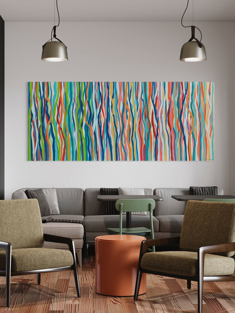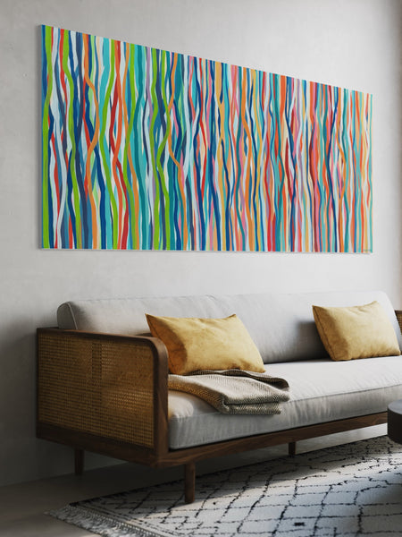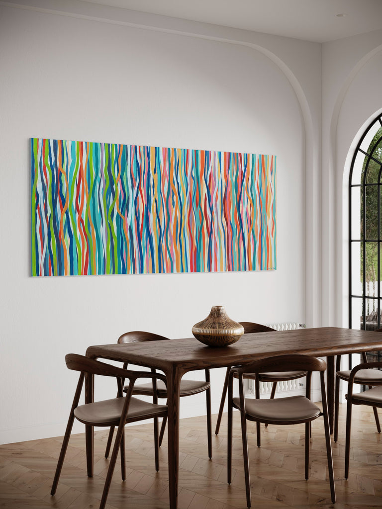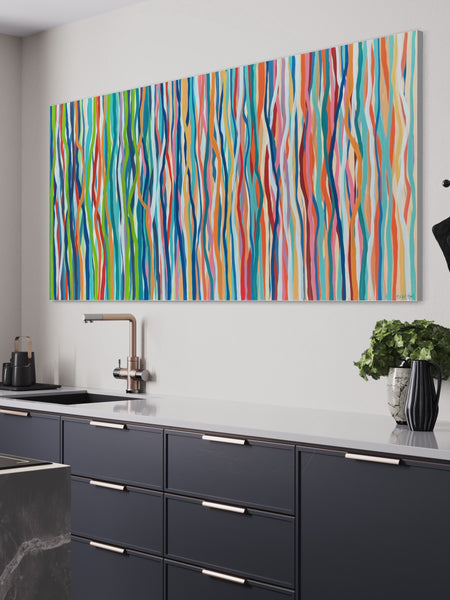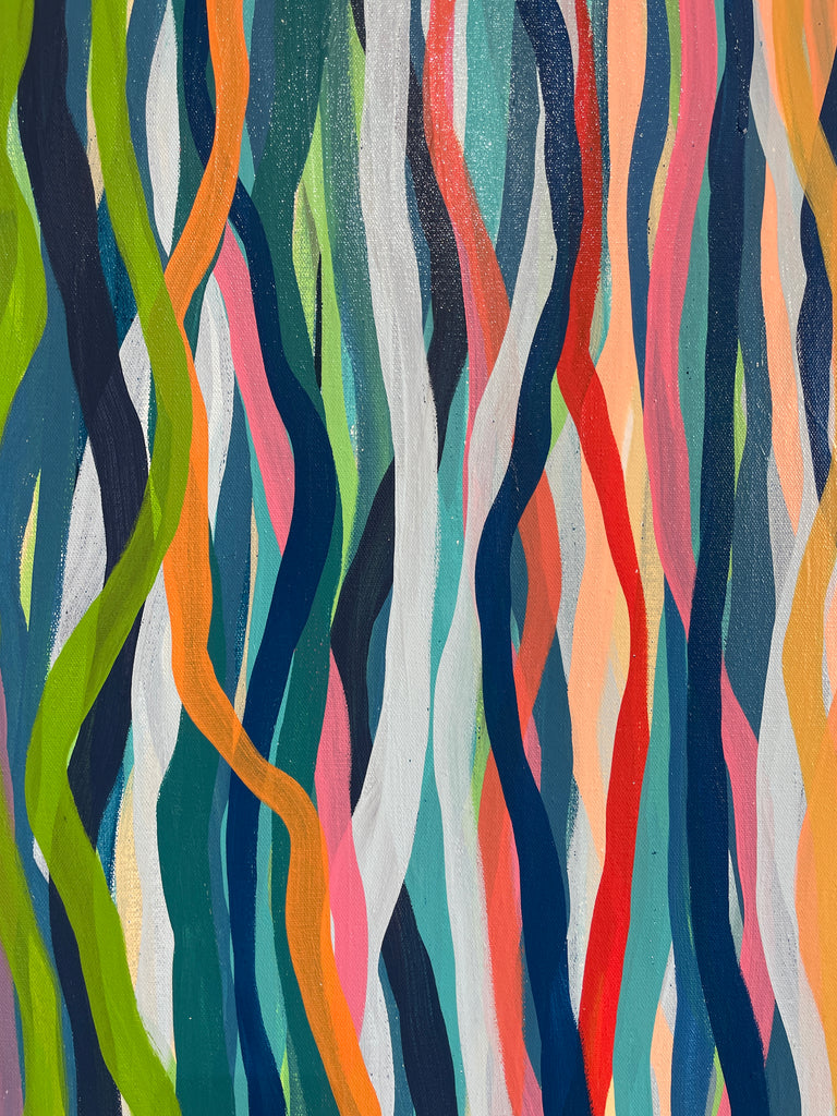 'Kippax Street' is an abstract impression of the colours and movement of the 60s and 70's. I love the way the conflicting and complimentary colours create movement as if they are dancing to the music of that time.