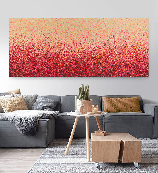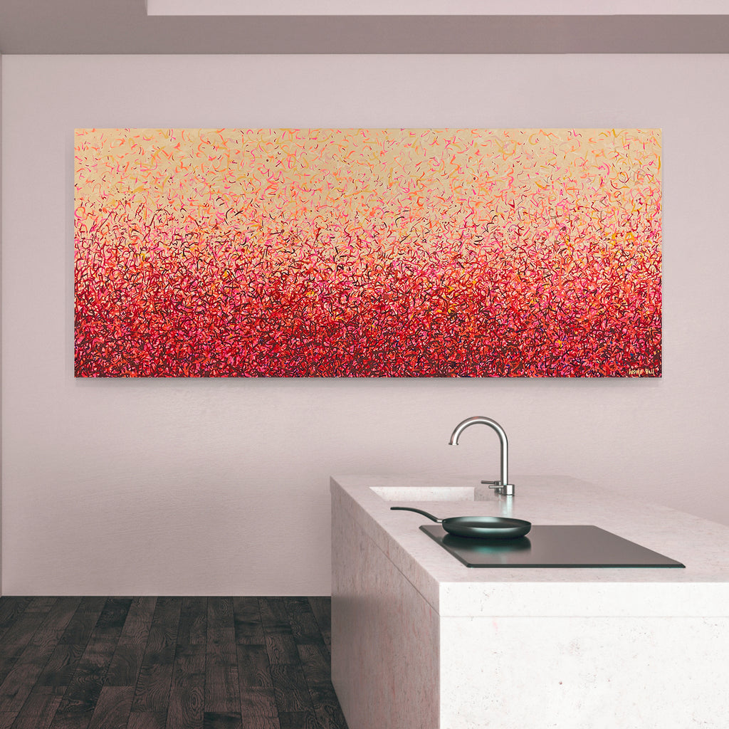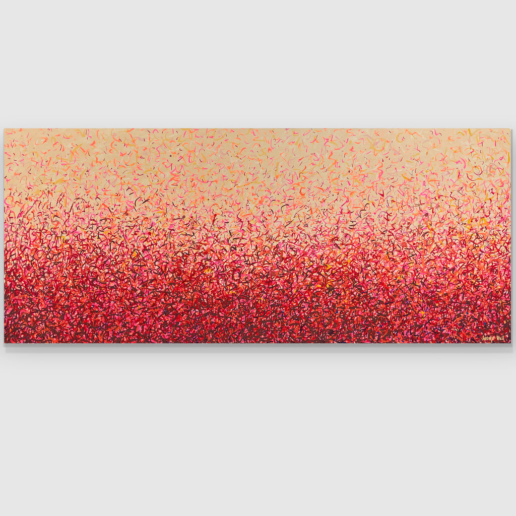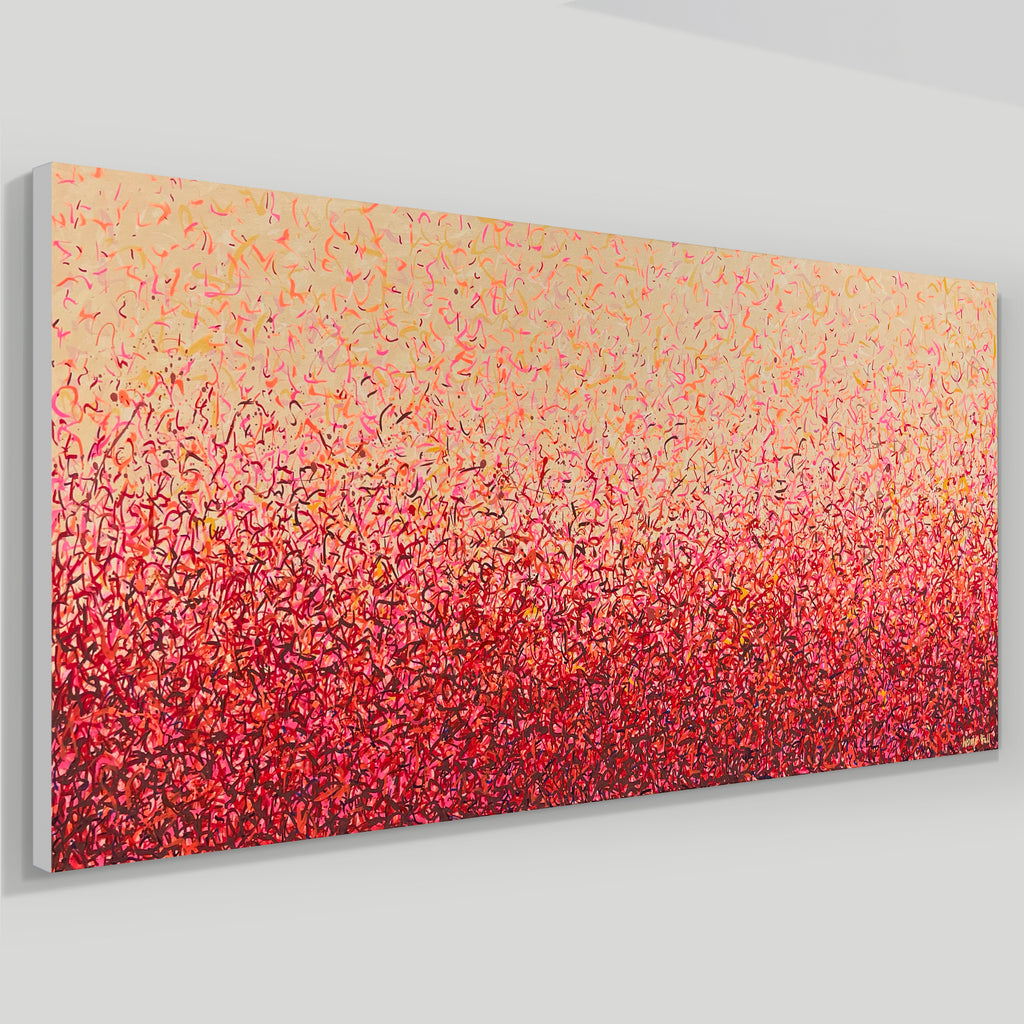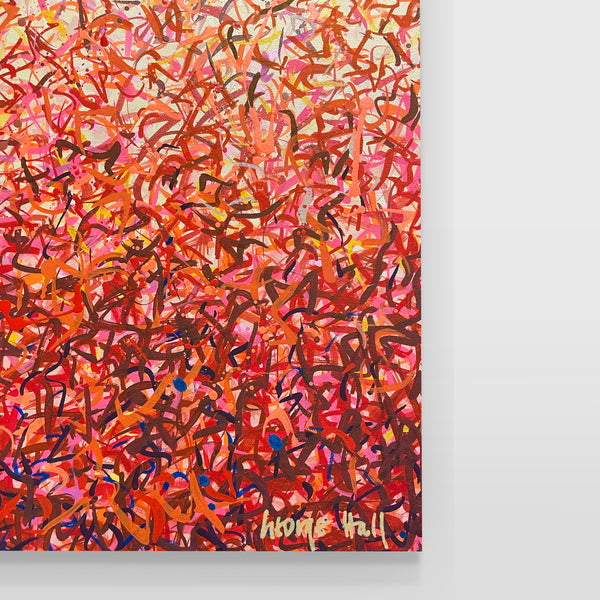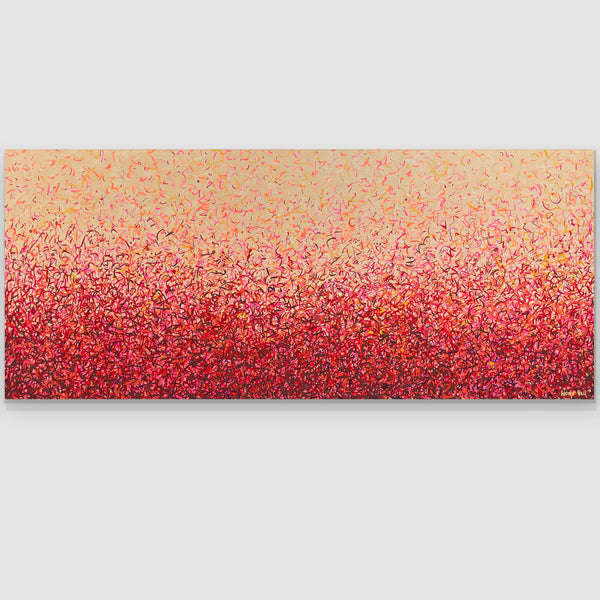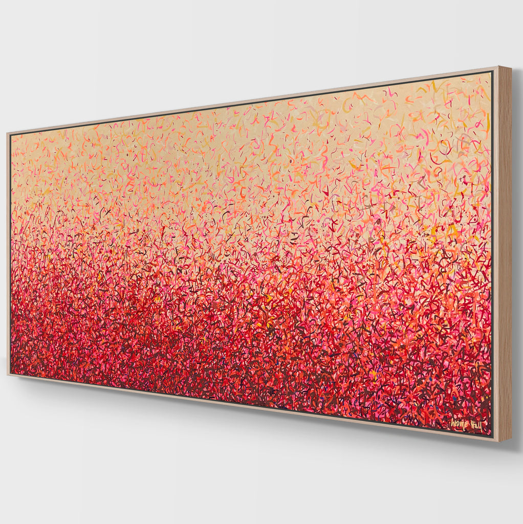 'Neon Kata Tjuta' is a very detailed painting with colour crossing over one another to create effect. A painting to express how nature is free to do whatever it wants, without expectations. This work is specific to the colours of Uluru in the Northern Territory and how they intertwine creating a dance of their own. It is not intended to be too literal and so allows you to see whatever you can find.