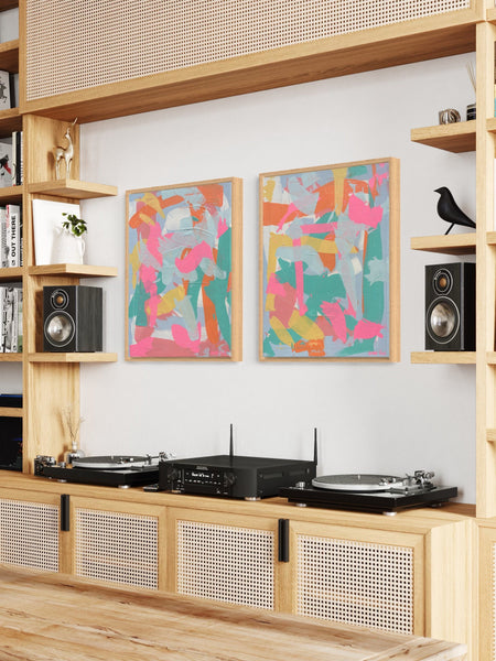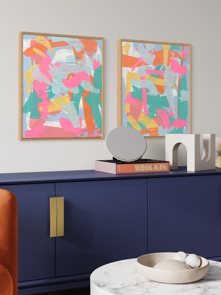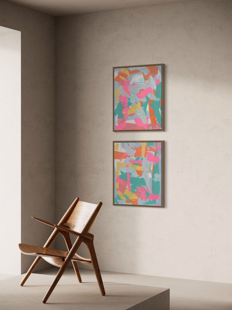 Perception is a collection of free forming paintings and Mixed Media works. Bolder, looser, unplanned artworks that freely and unapologetically express nothing. Unless you want them to. Hence the name ‘Perception”. I just let my arm do the thinking. Years of working in design has probably given my arm some bias of knowing what shapes and strokes just work together.