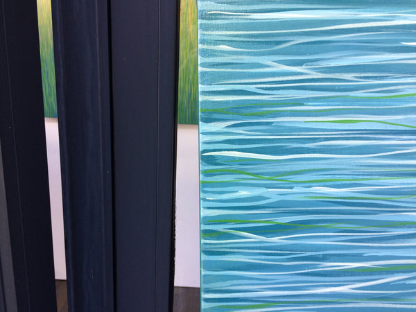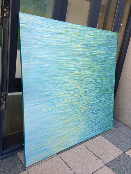 'Silent Current' depicts the flow of water, the light, shadow and movement. Has a very calming feel. It will fit into most interiors and blends in well with most colour schemes . A great solution to a large or medium size wall.