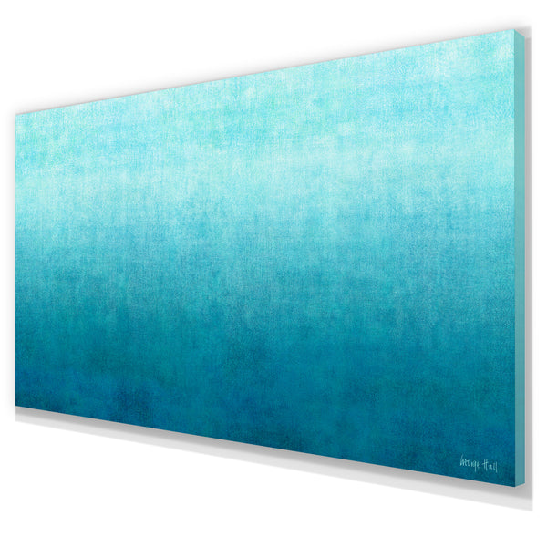 Slow Tide, is my impression of a tropical beach. Having grown up in Fiji I feel a sense of calm whenever I see these intense aquas and blues. This is my impression of the constant movement of the tide and the changing light and colour this creates.