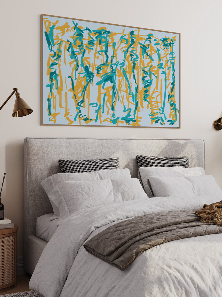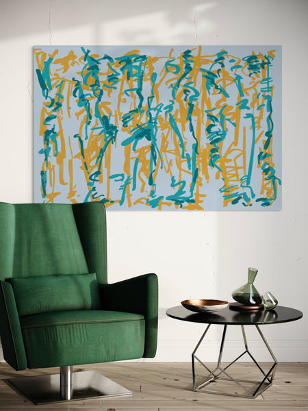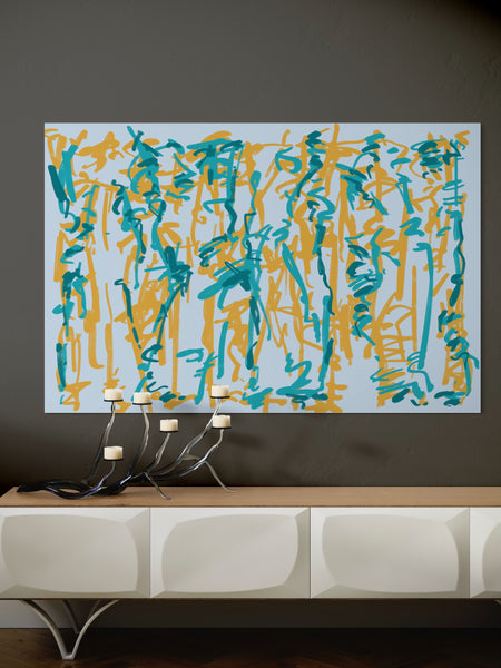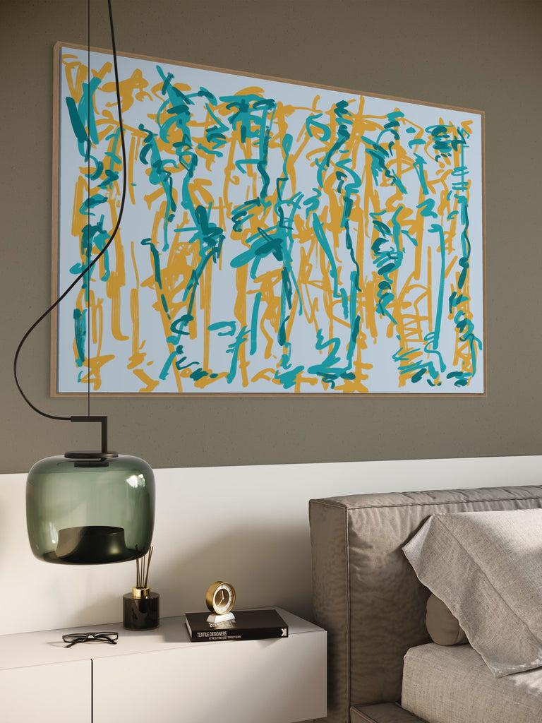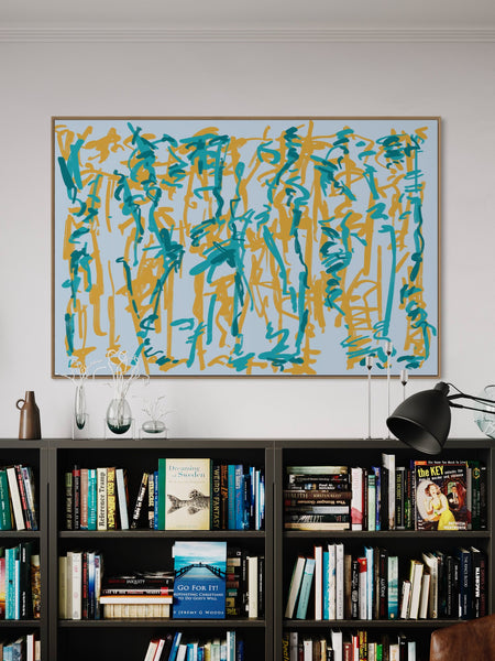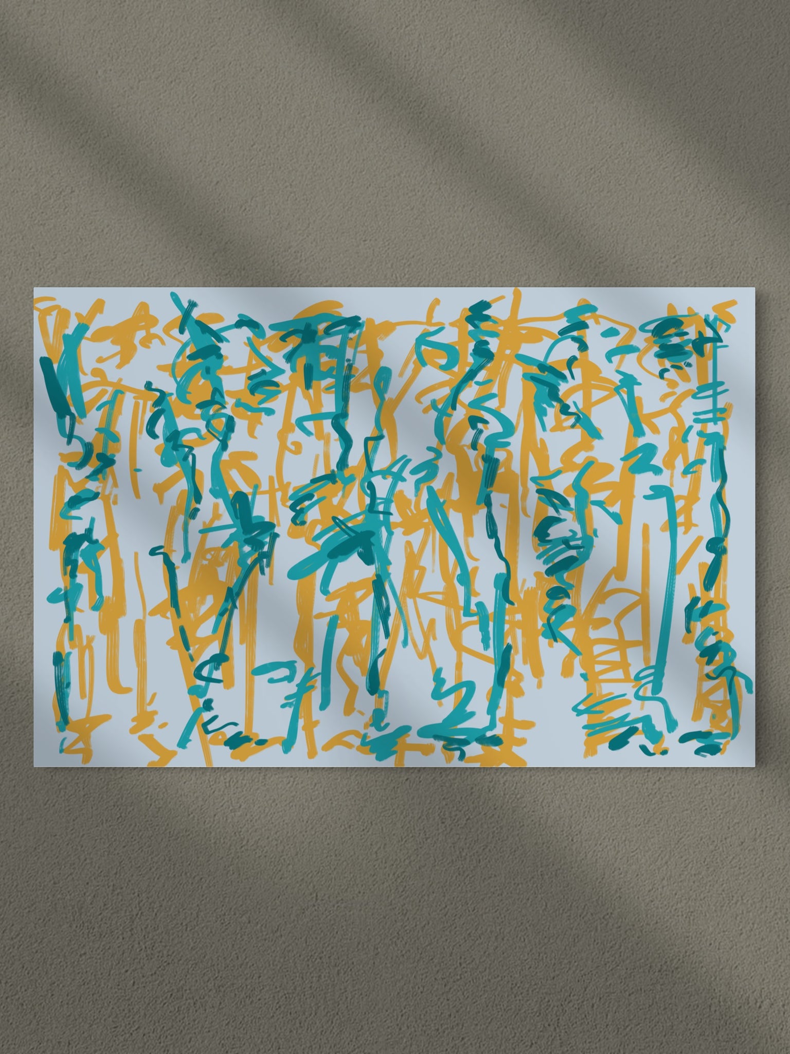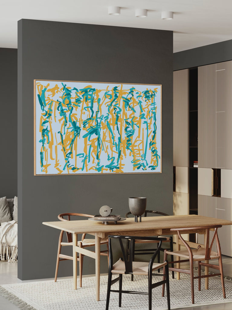 This print is an abstract representation of dancing freely at night, where the brushstrokes and vibrant colours evoke the energy of the dance floor. Shadows intertwine with the dancers, highlighting the night's allure and the sense of liberation.