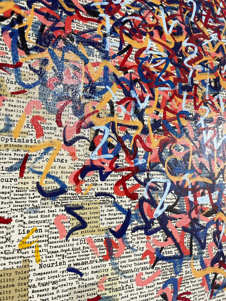 Thankful Optimist - mixed media on canvas - 127cm squ / 50" squ