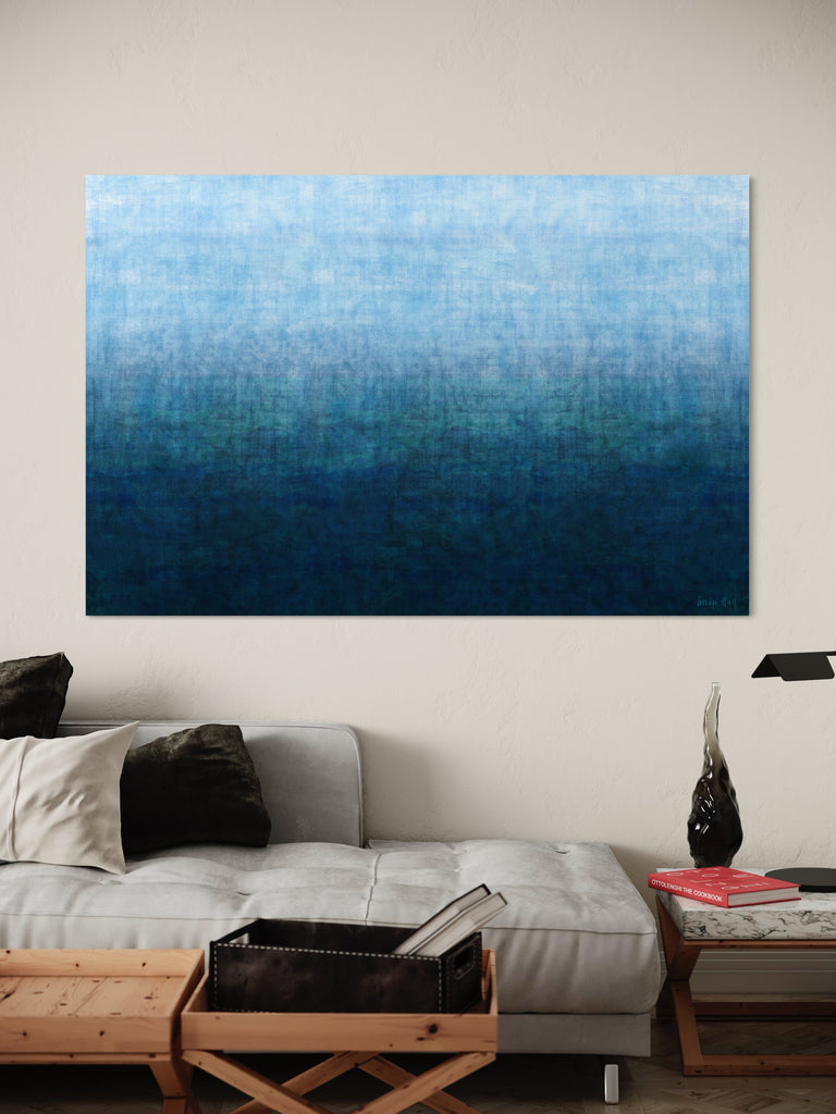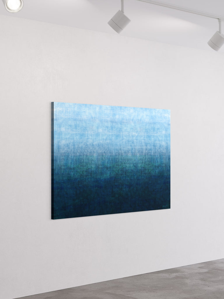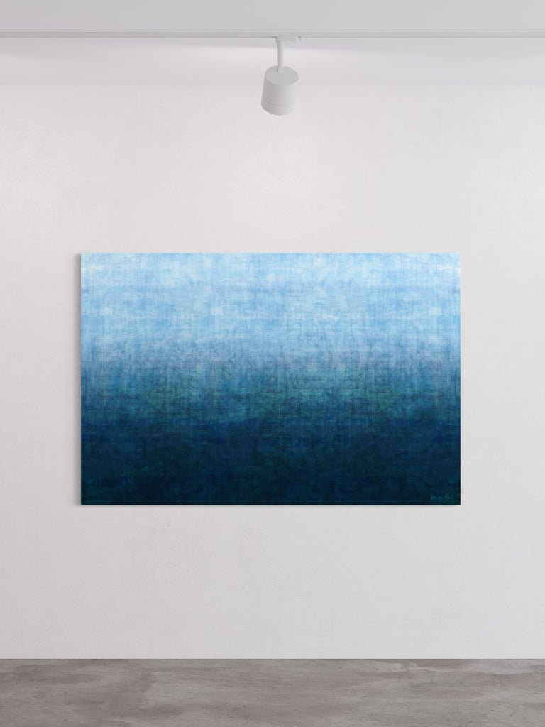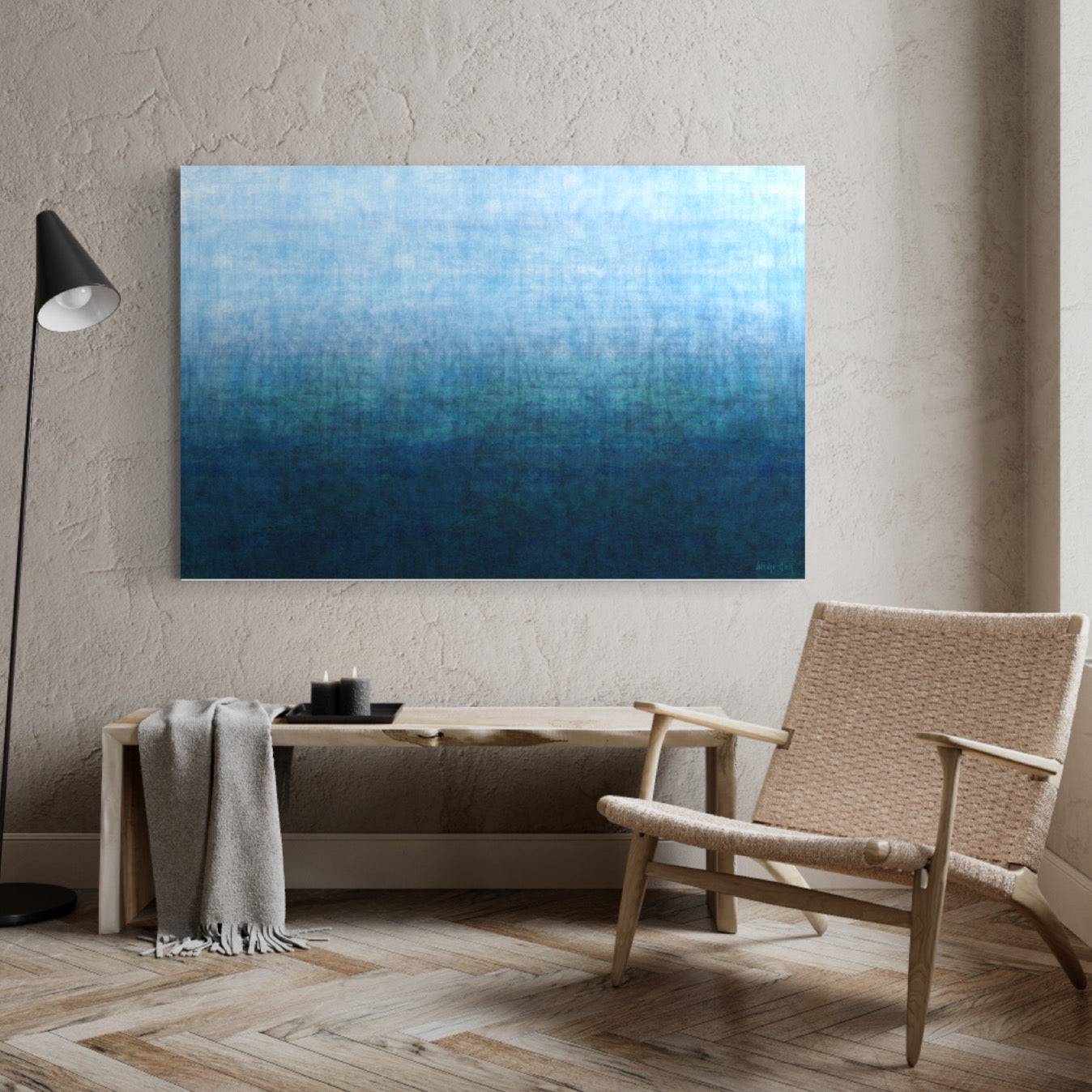 'The Gradual' has been released as a limited edition 1 - 10 only. This work is an impression of a seascape, depicting the subtle colour changes looking down from above. This exclusive print comes with a signed certificate of authenticity.* 2 weeks required for production after purchase.