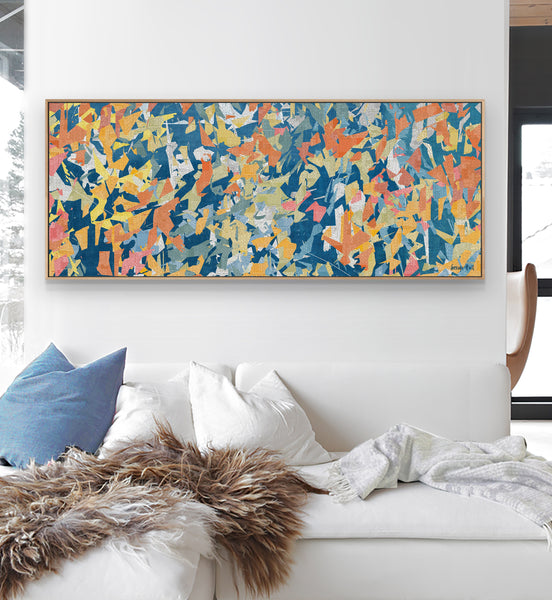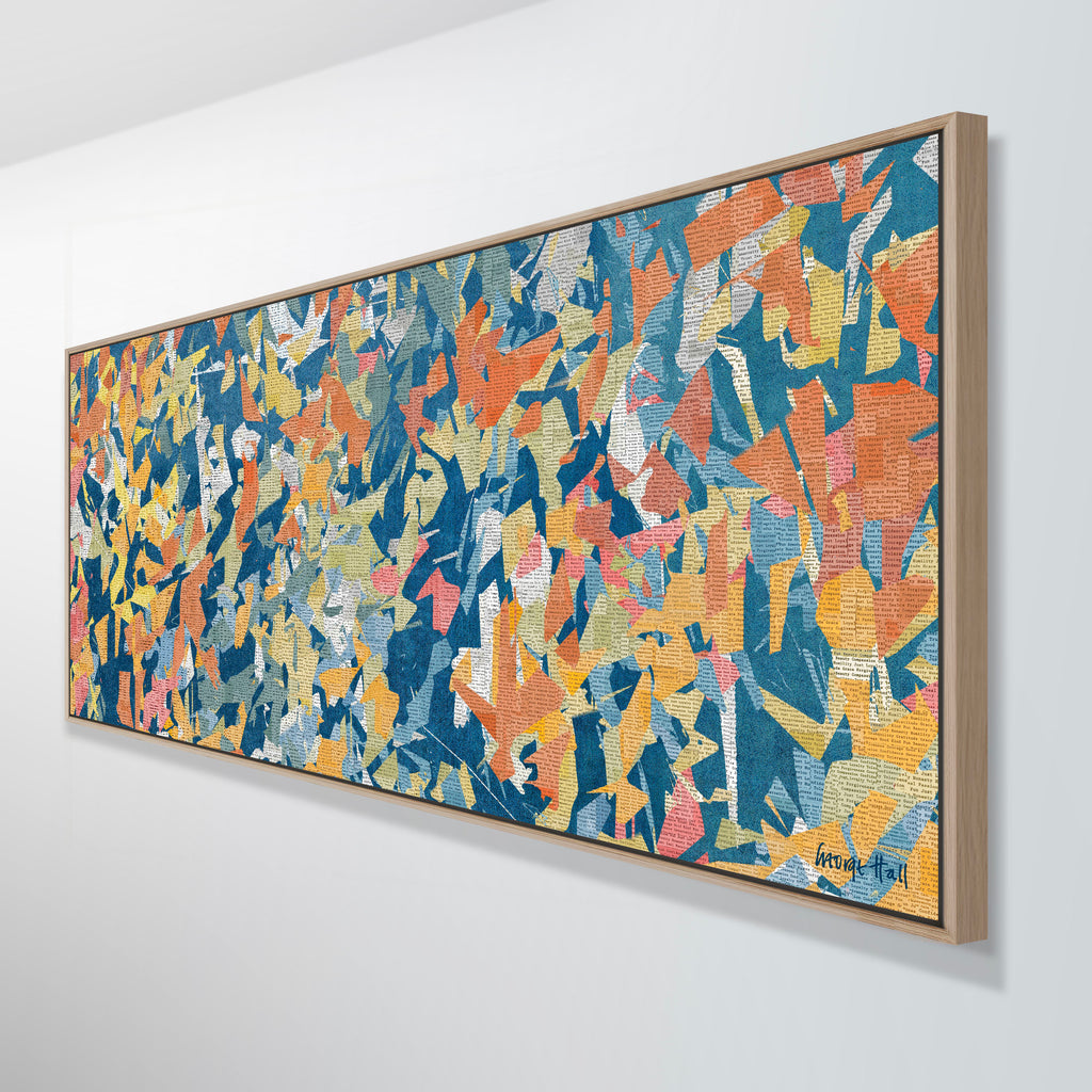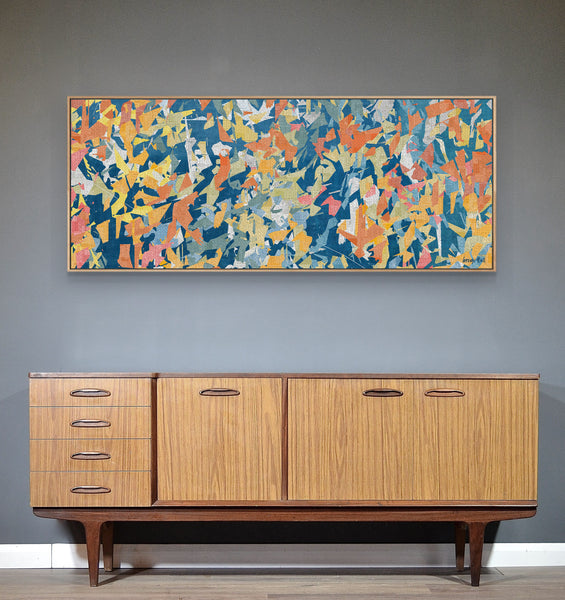 155 x 64cm mixed media on Canvas in Tasmanian Oak Floating Frame, Ready to hang.