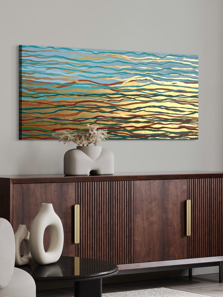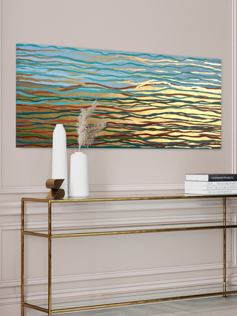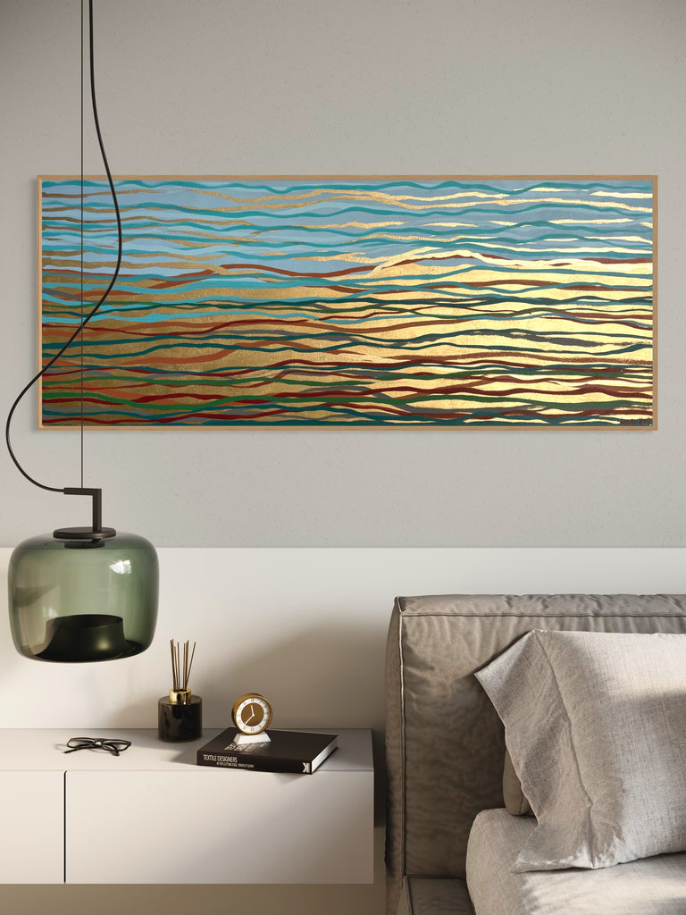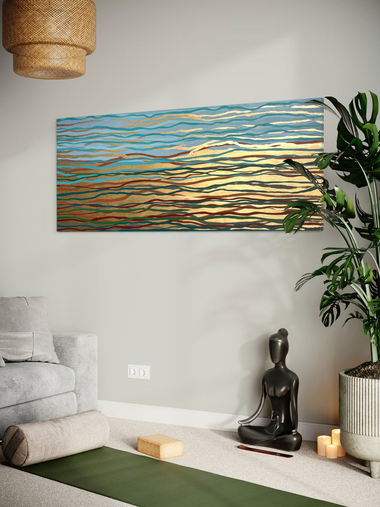 'Wise Sea' by George Hall. Gold brings abundance, mental balance, and vitality. It helps learning and with the realization of self-potential. It will bring success, happiness, enthusiasm, and power. It will fill your life with comfort, kindness, and magic, making you more attuned to nature and the people around you. So being able to splash gold freely is a wonderful feeling of freedom.
