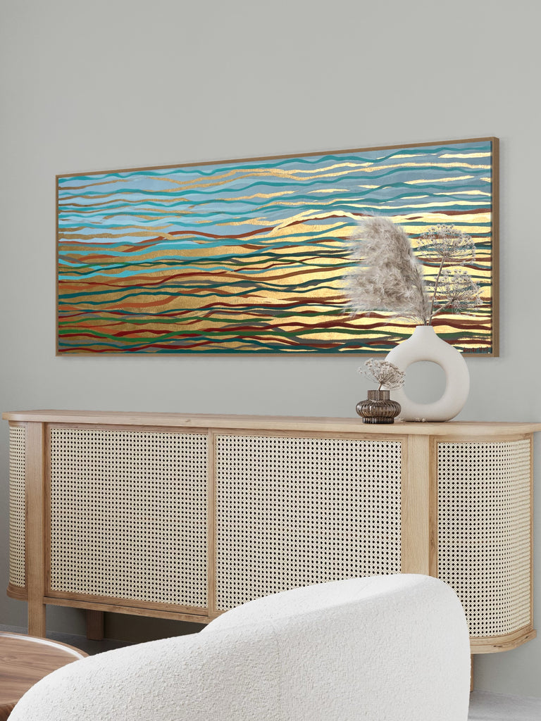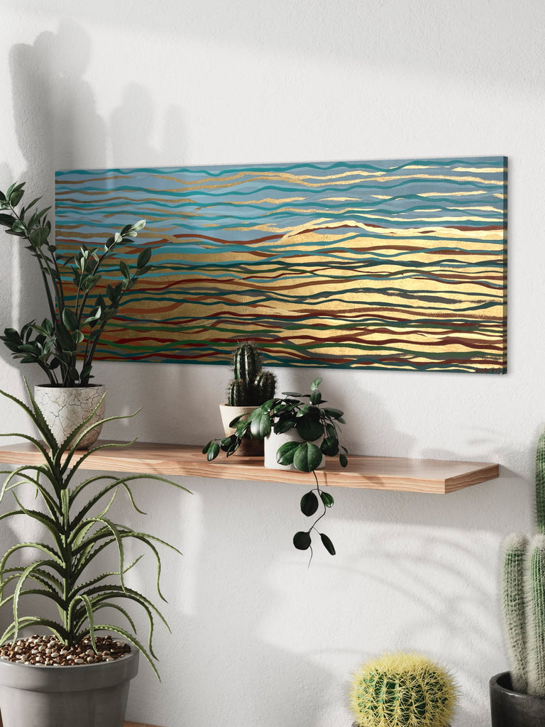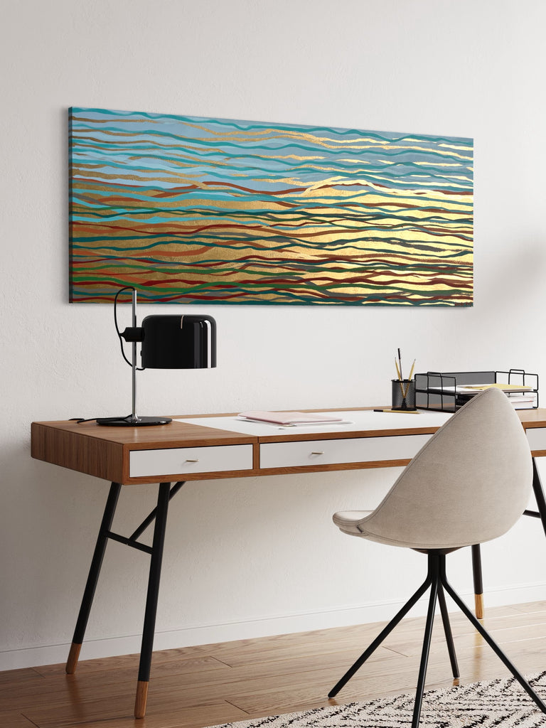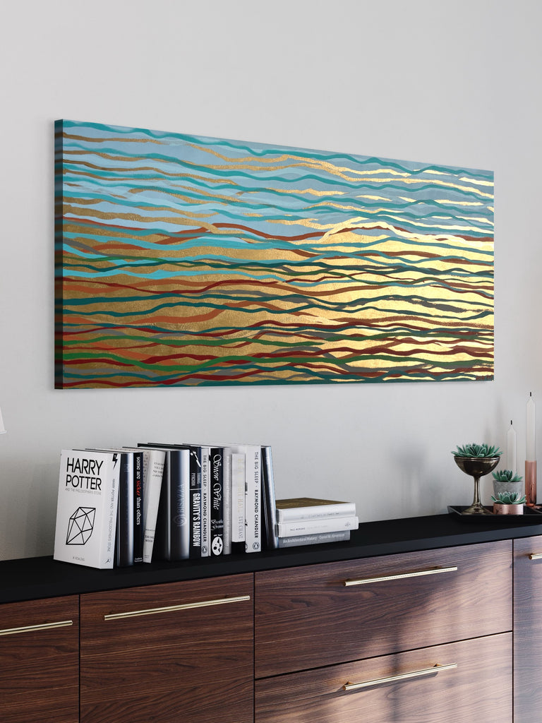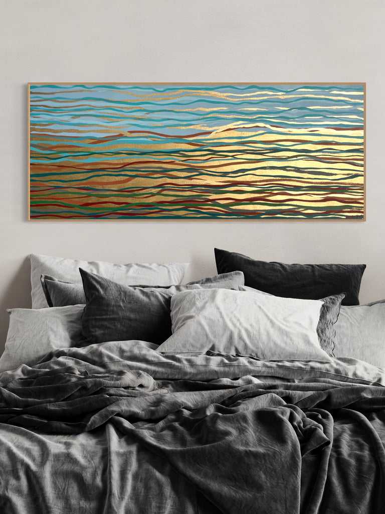 'Wise Sea' by George Hall. Gold brings abundance, mental balance, and vitality. It helps learning and with the realization of self-potential. It will bring success, happiness, enthusiasm, and power. It will fill your life with comfort, kindness, and magic, making you more attuned to nature and the people around you. So being able to splash gold freely is a wonderful feeling of freedom.