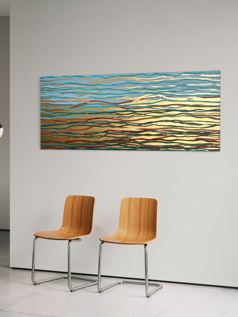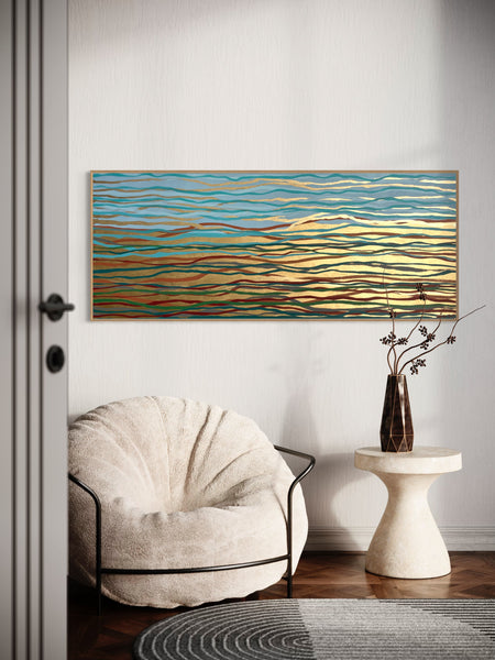 Wise Sea - metallic gold paint and acrylic on canvas - 152 x 61cm / 60" x 24"