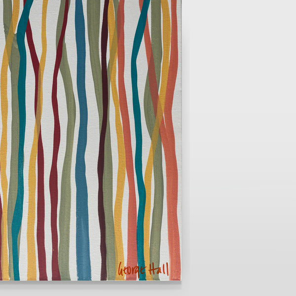 'Yarrabee Land' by George Hall. I was inspired by a drive I had down to the south coast of NSW. The changing colours of the Yarrabee Trees (Gum Trees) and the movement of the trees as I sped by created this image in my head.