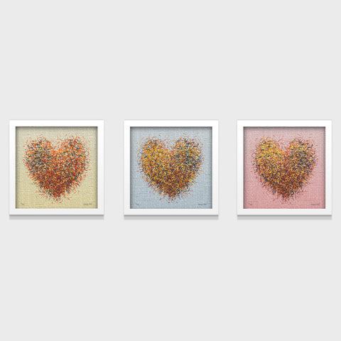'Drifting A, B and C' - Framed, acrylic and gold painting on canvas - 33.5cm squ (x3) / 13" squ (x3)