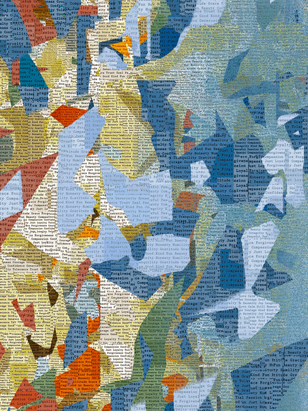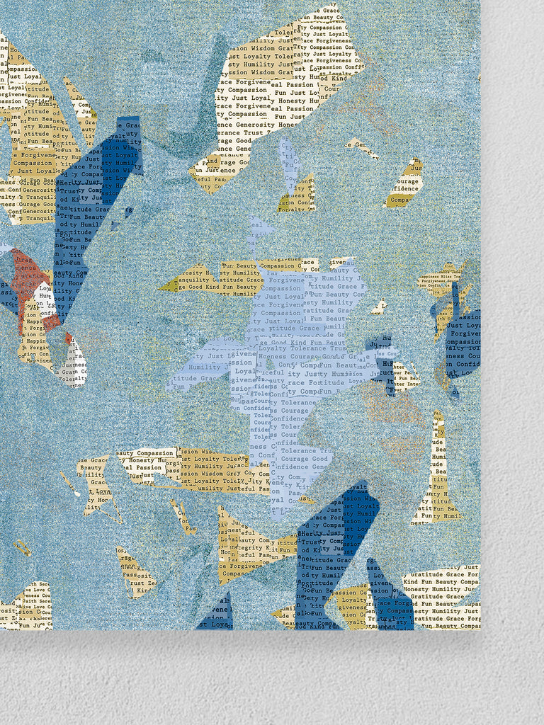 'News Port' has been released as a limited edition canvas print 1 - 35. The newspaper effect is constructed using positive and motivational words only, please look at the detailed photos to see this. The positive words are a counter play to all the negativity surrounding what the world is going through. I also have a rule that only positive art goes on my wall. I wanted to create a sense of flight and movement, a feeling of growing and moving forward.