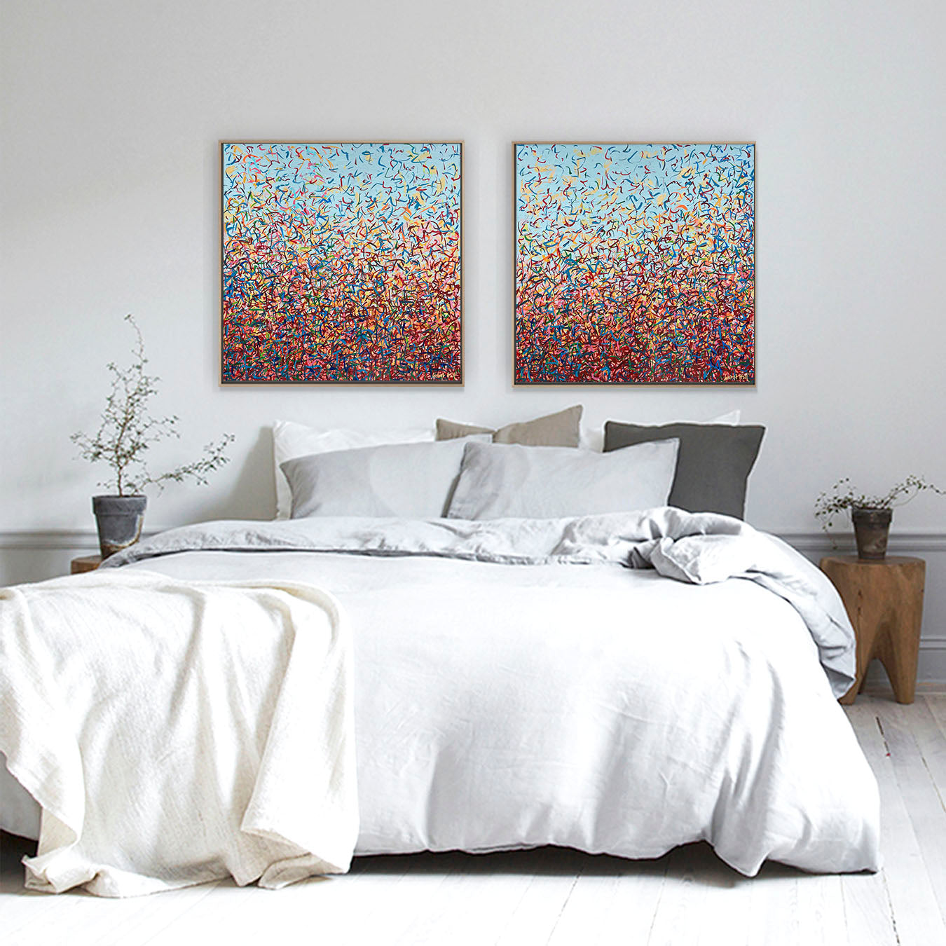 Darwin Pollen Dance A & B By George Hall. Acrylic Paint on canvas, stretched and ready to hang.