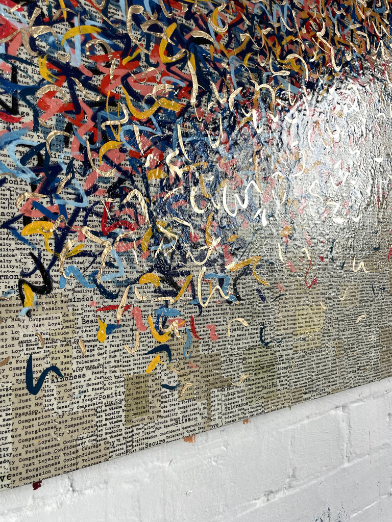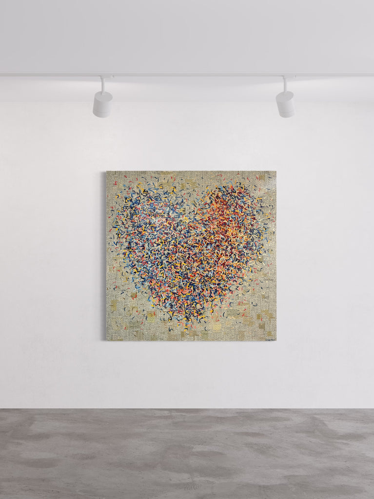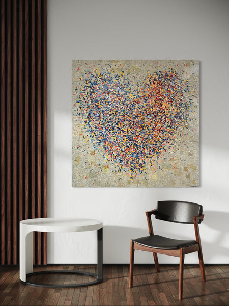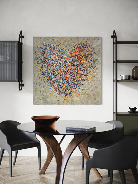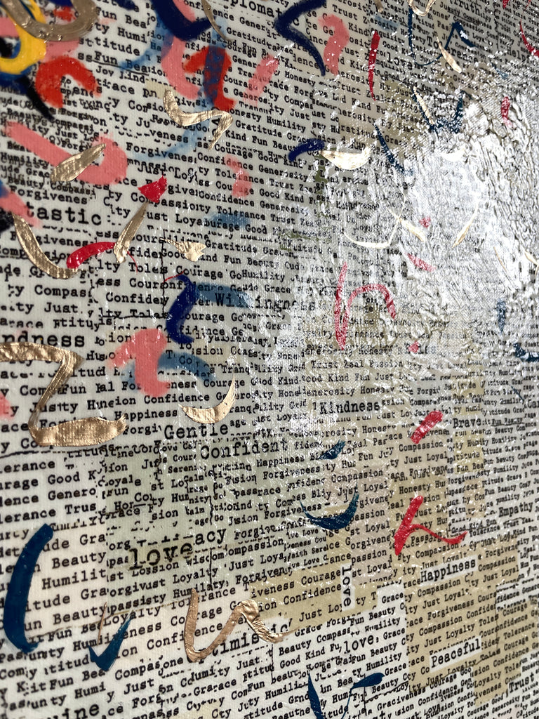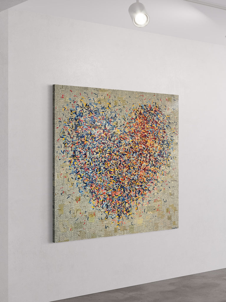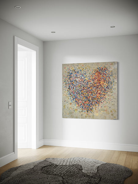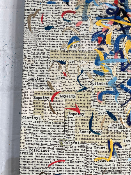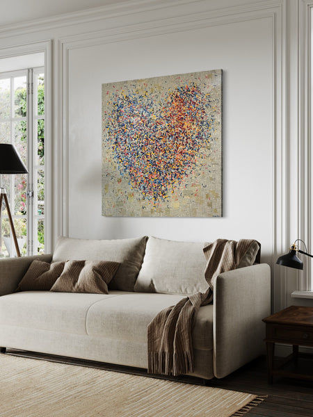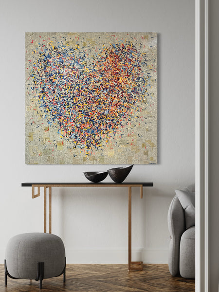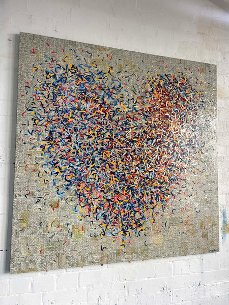 Golden Sepia Optimist - mixed media on canvas - 127cm squ / 50" squ
