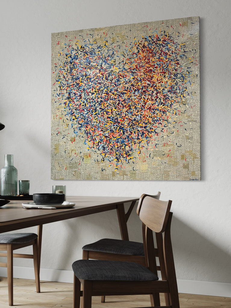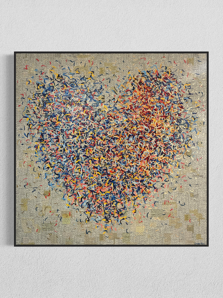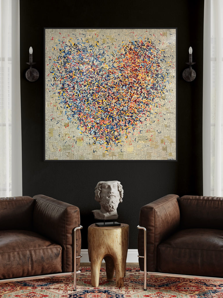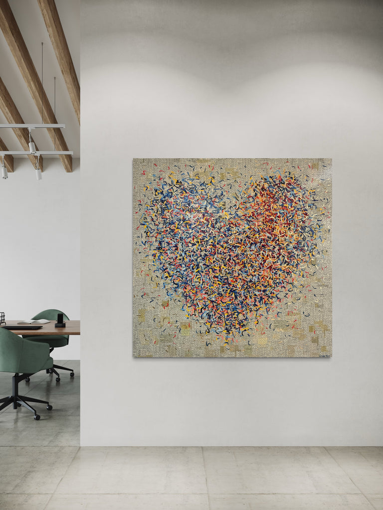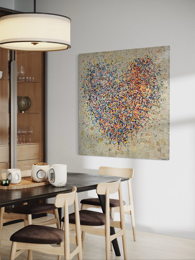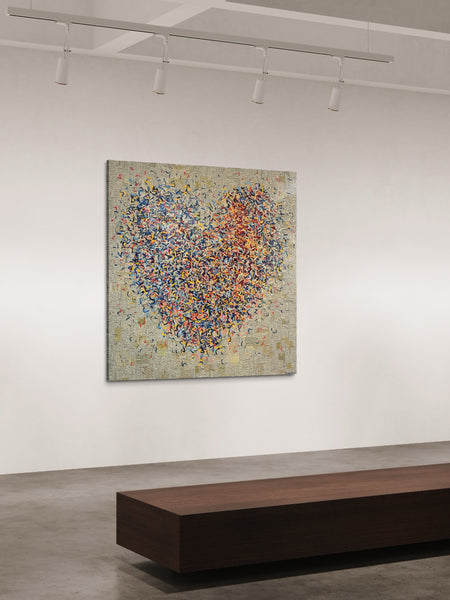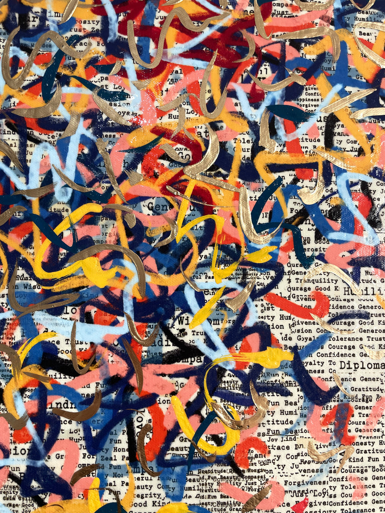 Golden Sepia Optimist - mixed media on canvas - 127cm squ / 50" squ