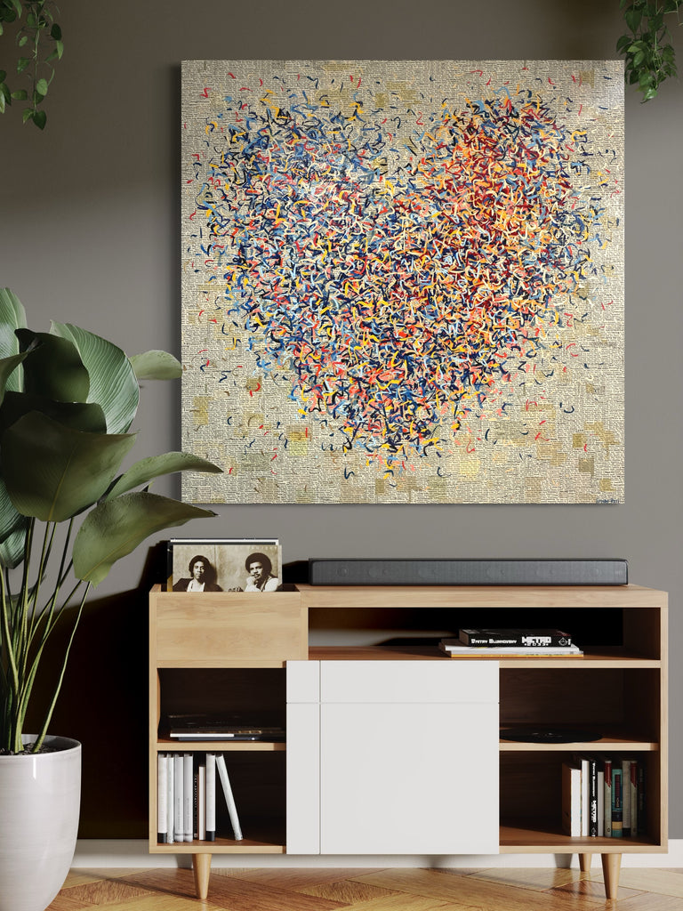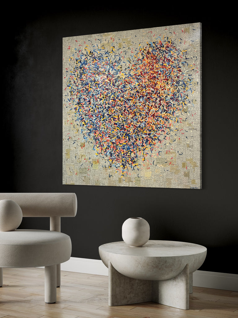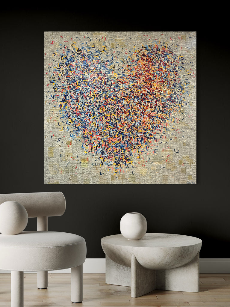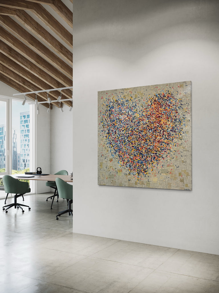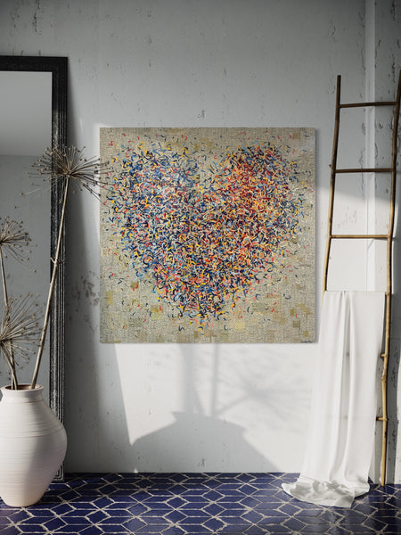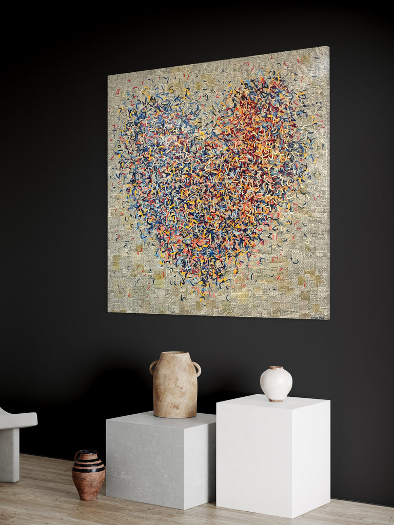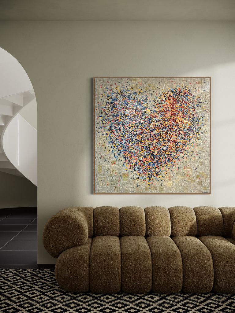 Golden Sepia Optimist - mixed media on canvas - 127cm squ / 50" squ