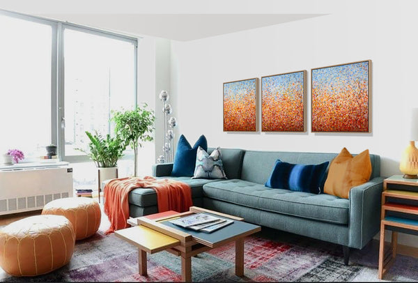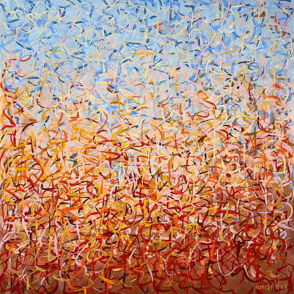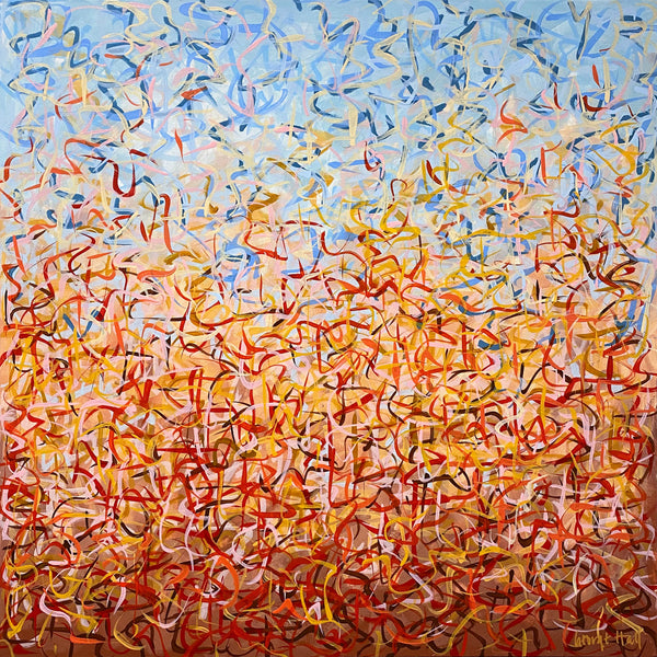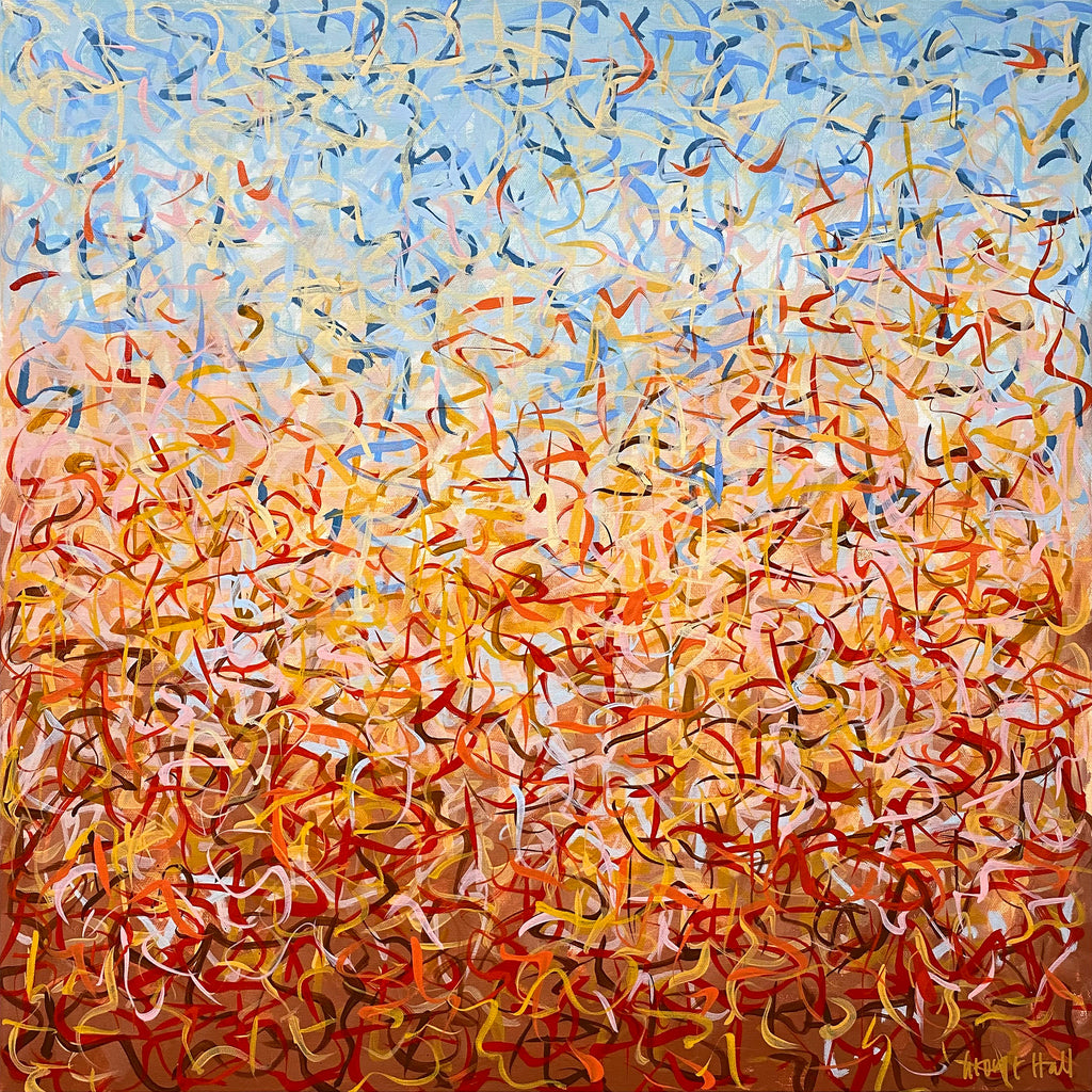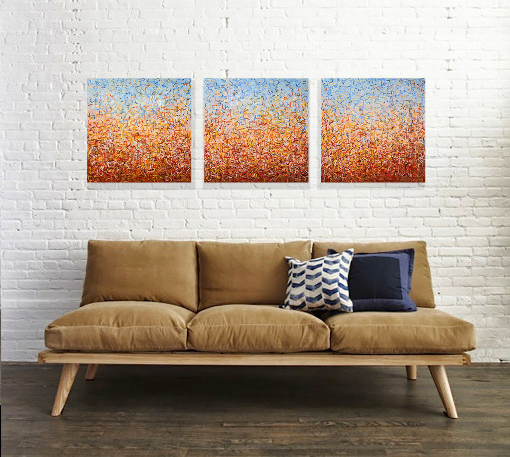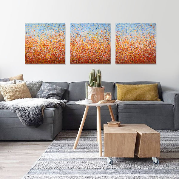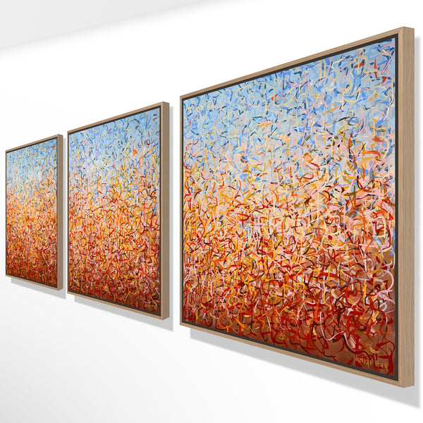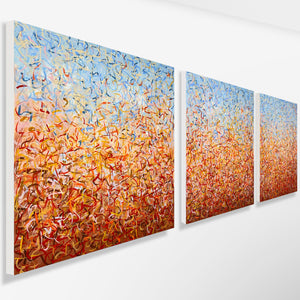 'Outback Oondiri' is an unframed triptych. Expressing the colours and movement of the Outback, hence the name. I really liked my work to have a sense of movement and I find the movement of nature very soothing. It is not intended to be too literal and so allows you to see whatever you can find.