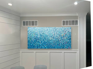 Commission of 'Killalea Water Dance' is a painting that was inspired by Killalea Beach, located south of Sydney in NSW. It is a detailed painting with colour crossing over one another to create effect. For this particular painting I have added in bright neon splatters. This is a painting to express how nature is free to do whatever it wants, without expectations. It is specific to the colours of Killalea Beachand how they intertwine creating a dance of their own. It is not intended to be too literal and so allows you to see whatever you can find.